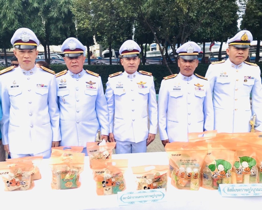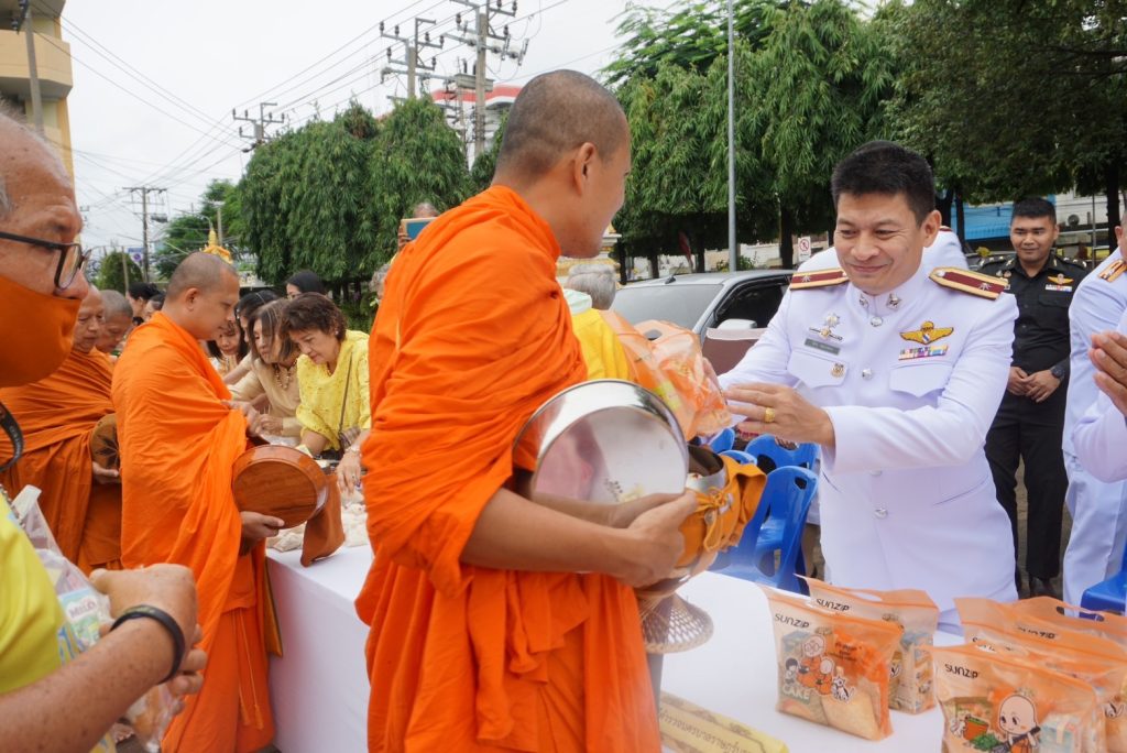ข้าราชการตํารวจ สังกัด สน.ราษฎร์บูรณะ เข้าร่วมพิธีทําบุญตักบาตรกับหน่วยงานต่างๆณ บริเวณลานพิธีจัดงานของ สนง.เขตทุ่งครุ ในวันที่ 13 ตุลาคม 2567 เวลา 08.30 น.