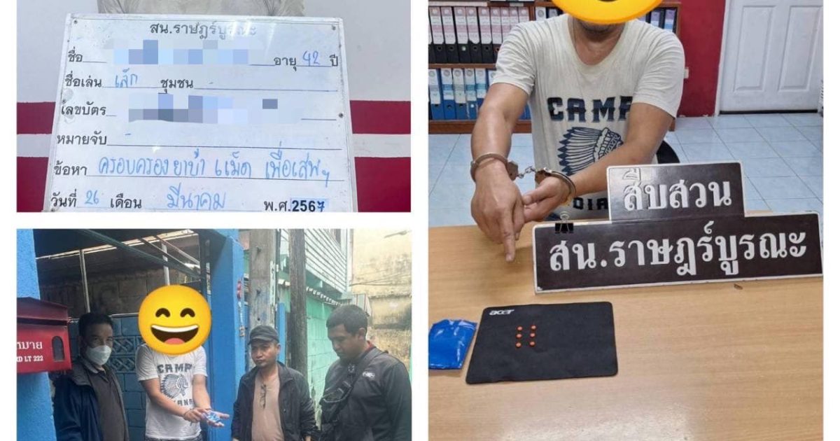 สถานที่จับกุม : บริเวณหน้าบ้านเลขที่ 46 ท้ายซอยสุขสวัสดิ์ 26 เเยก 4 แขวง บางปะกอก เขต ราษฎร์บูรณะ กรุงเทพฯ