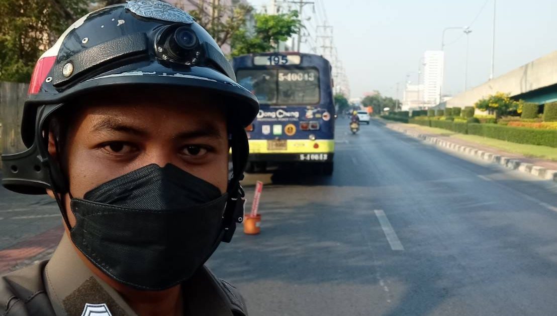 รถโดยสารประจำทางสาย 195 จอดเสียบริเวณสุขสวัสดิ์ 22 ด้านขาเข้า เจ้าหน้าที่ตำรวจจราจร สน.ราษฎร์บูรณะ พร้อมจิตอาสานำพ้นการกีดขวาง