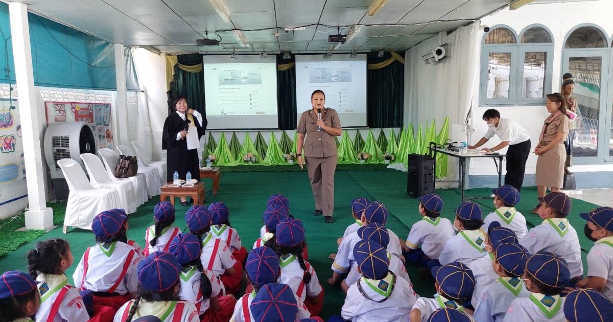 พ.ต.อ.วัชรพล สุวนันทวงศ์ ผกก.สน.ราษฎร์บูรณะ มอบหมายให้ พ.ต.ท.เอกพจน์ สังเมียน รอง ผกก.ป.สน.ราษฎร์บูรณะ ,ด.ต.หญิง บุศราภรณ์ ลิกขะไชย ผบ.หมู่ (ปจว.ธร.)(ป.)สน.ราษฎร์บูรณะ พร้อมด้วย น.ส.ธนวรรณ เลิศสิริธรรม ทนายความอาสา บรรยายให้ความรู้ด้านกฎหมาย ในกิจกรรมทนายจิ๋ว ให้กับนักเรียนชั้น ป.1 – ป.6 จำนวน 559 คน โรงเรียนเยาวลักษณ์วิทยาธนบุรี