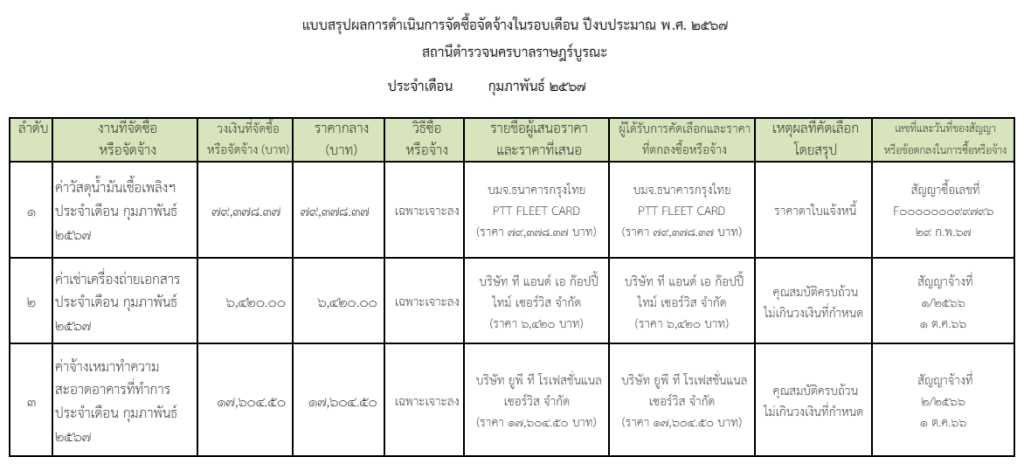 สรุปผลการจัดซื้อจัดจ้าง ประจำเดือน กุมภาพันธ์ 2567