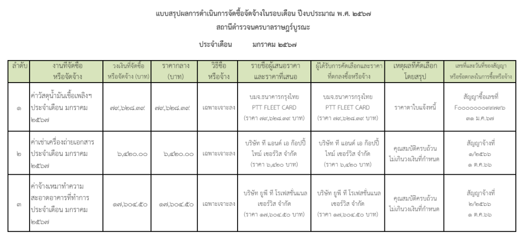 สรุปผลการจัดซื้อจัดจ้าง ประจำเดือน มกราคม 2567