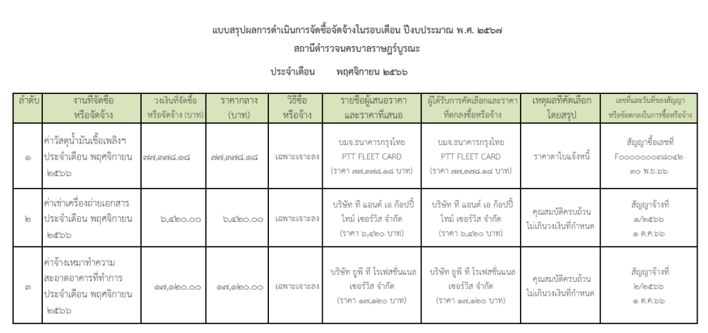 สรุปผลการจัดซื้อจัดจ้าง ประจำเดือน พฤศจิกายน 2566