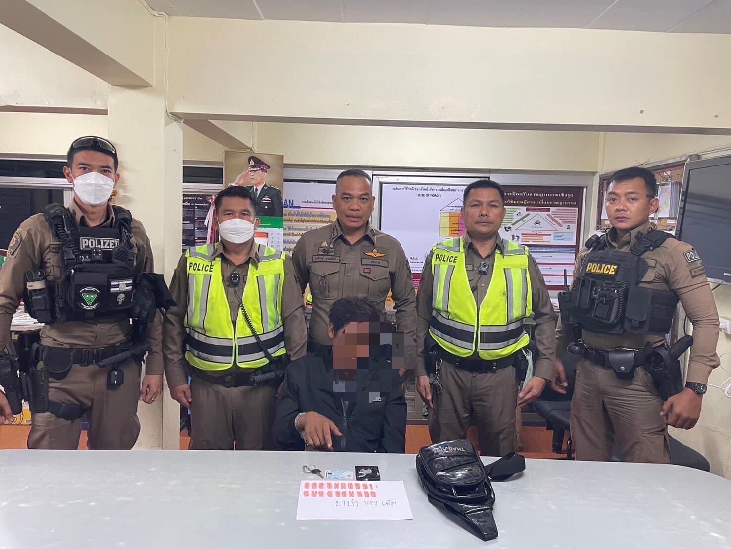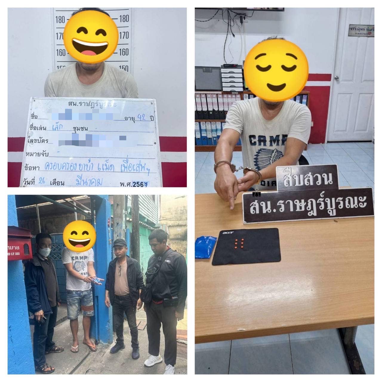 จับกุม ผู้ต้องหา ครอบครองยาบ้า 1 ราย ผตห. 1 คน ของกลางยาบ้า จำนวน 197 เม็ด