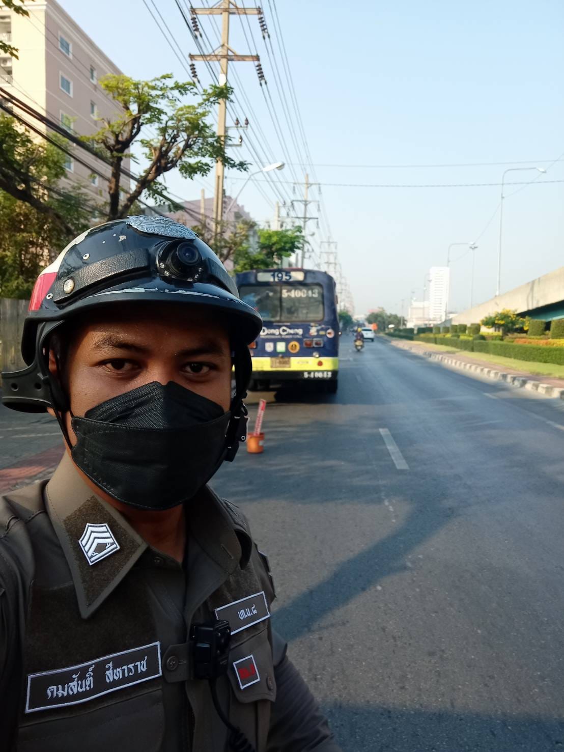 รถโดยสารประจำทางสาย 195 จอดเสียบริเวณสุขสวัสดิ์ 22 ด้านขาเข้า เจ้าหน้าที่ตำรวจจราจร สน.ราษฎร์บูรณะ พร้อมจิตอาสานำพ้นการกีดขวาง