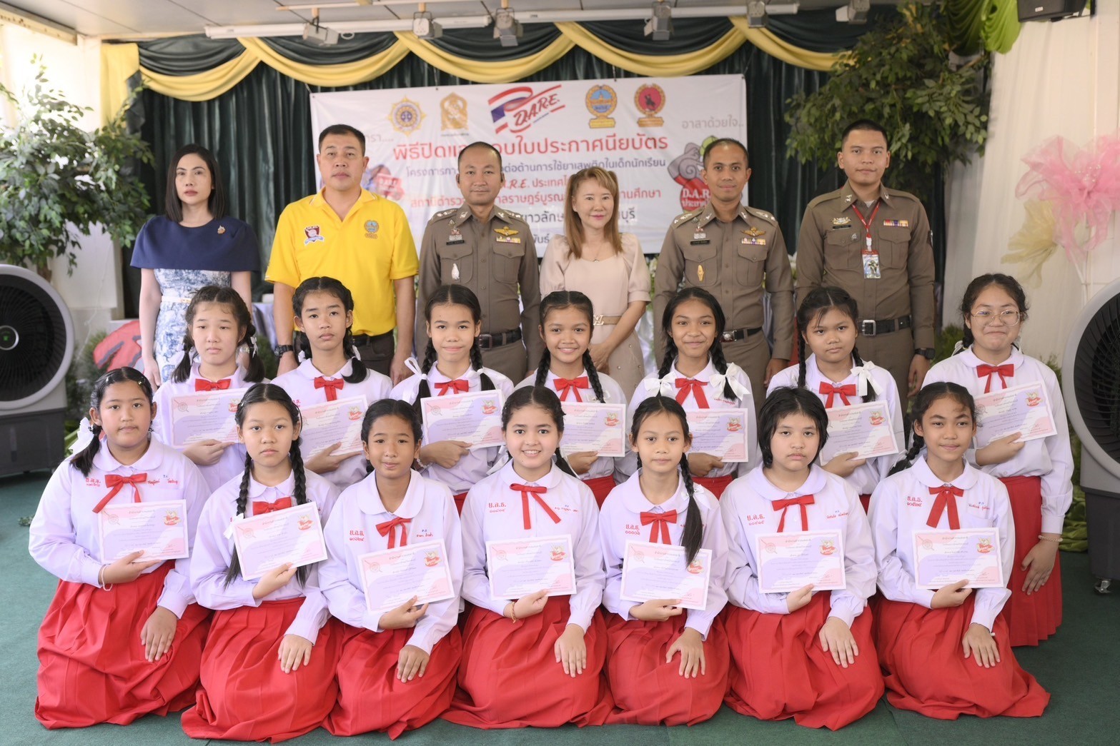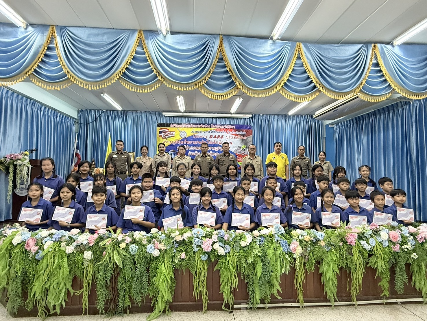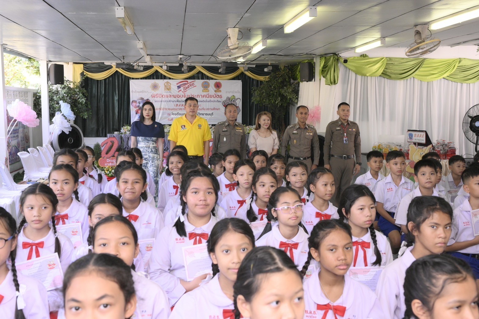 ร่วมกันดำเนินกิจกรรมปิดโครงการแดร์ ( D.A.R.E. ประเทศไทย) ในภาคการศึกษาที่ 2/2567 เพื่อให้นักเรียนได้เรียนรู้และตัดสินใจ การปฏิเสธ เกี่ยวกับการไม่เข้าไปยุ่งเกี่ยวกับยาเสพติดทุกชนิด พร้อมมอบใบประกาศเกียรติคุณ , ช้างแดร์ ,อุปกรณ์เครื่องเขียน ให้กับนักเรียนที่ชนะการประกวดเขียนเรียงความเกี่ยวกับแดร์ ตามโครงการ “การศึกษาเพื่อต่อต้านการใช้ยาเสพติดในเด็กนักเรียน” มีผู้ผ่านการศึกษาตามเกณฑ์