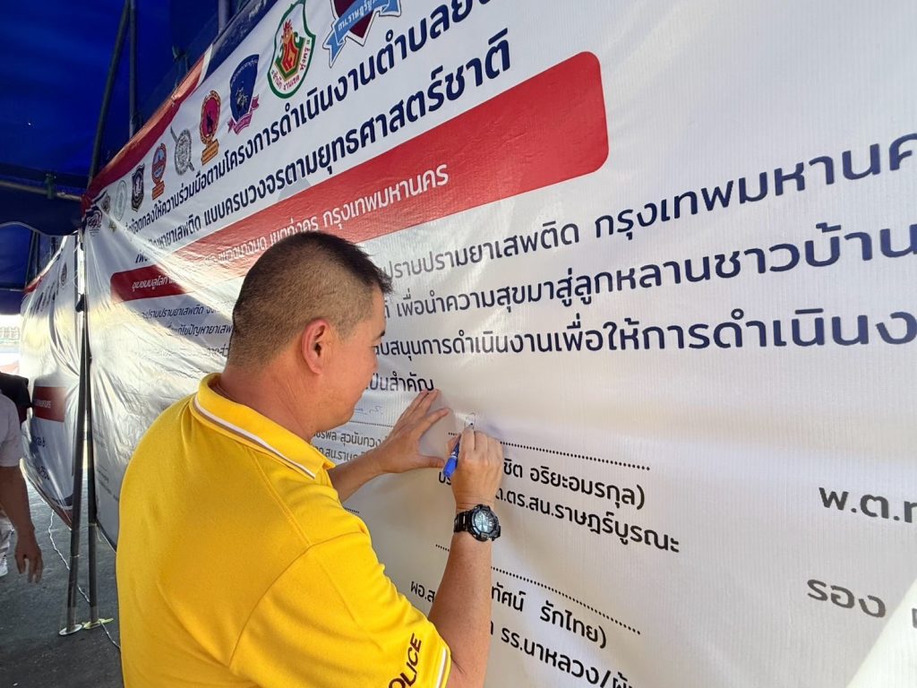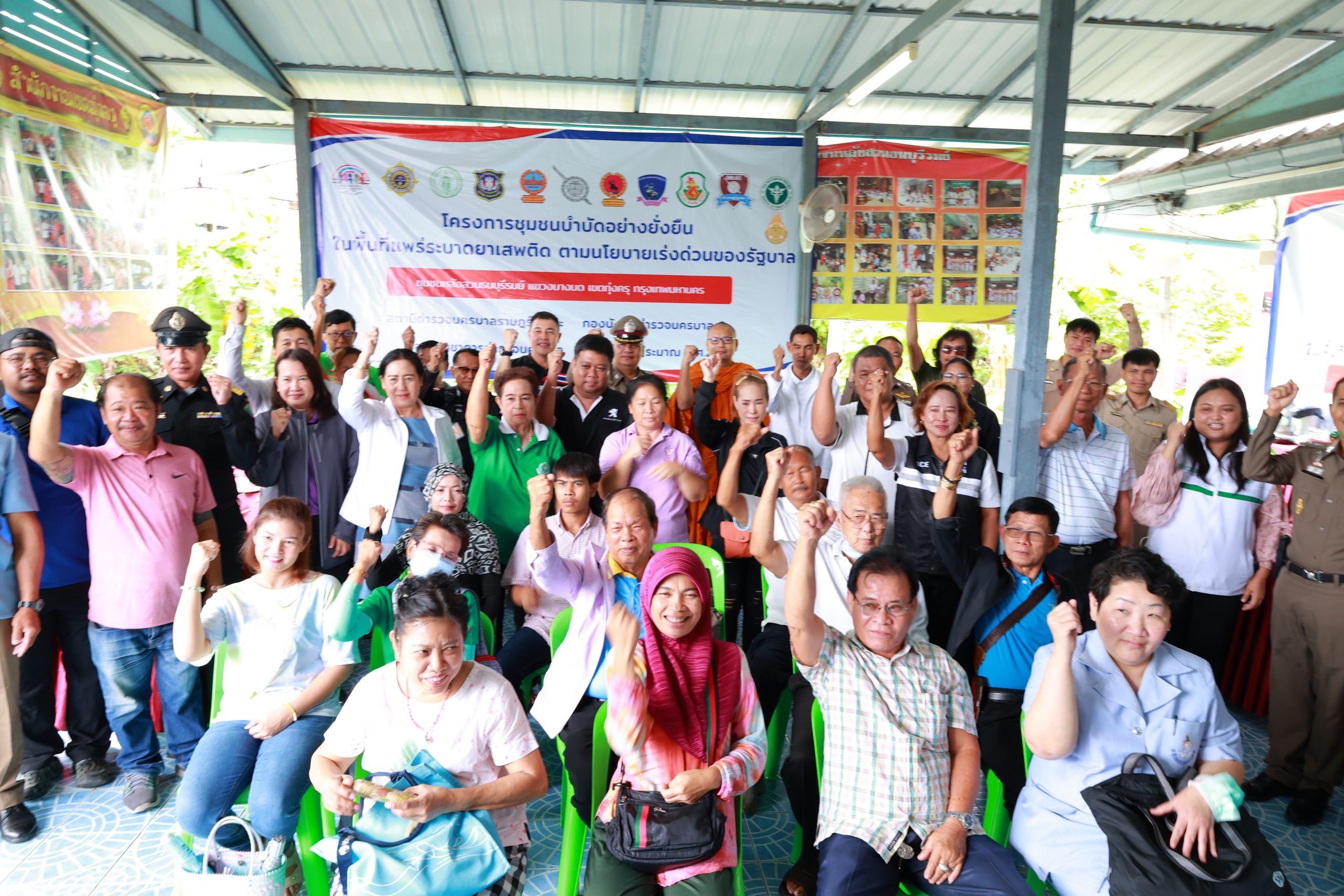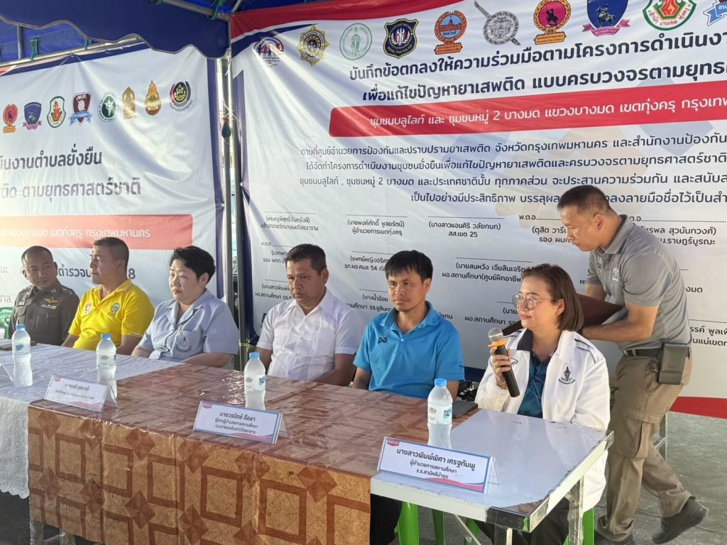 วันที่ 12 ม.ค. 2568 เวลา 14.00 น. -16.00 น.สน.ราษฎร์บูรณะพร้อมประธาน กต.ตร.สน.ราษฎร์บูรณะอีกทั้งตชส.สน.ราษฎร์บูรณะเเละคณะกรรมการชุมชน และประชาชนในชุมชนชุมชนบลูไลท์ และชุมชนหมู่ 2 บางมดร่วมพิธีเปิดโครงการดำเนินงานตำบลยั่งยืน เพื่อแก้ปัญหายาเสพติด แบบครบวงจรตามยุทธศาสตร์ชาติ ประจำปีงบประมาณ 2568 พร้อมจัดทำบันทึกข้อตกลงร่วมมือ (MOU) โดยการมีส่วนร่วมของเครือข่ายภาครัฐและภาคเอกชน ที่เข้ามามีส่วนร่วมในการแก้ปัญหายาเสพติด แบบบูรณาการอย่างยั่งยืนณ ชุมชนบลูไลท์ แขวงบางมดเขตทุ่งครุ กรุงเทพฯ